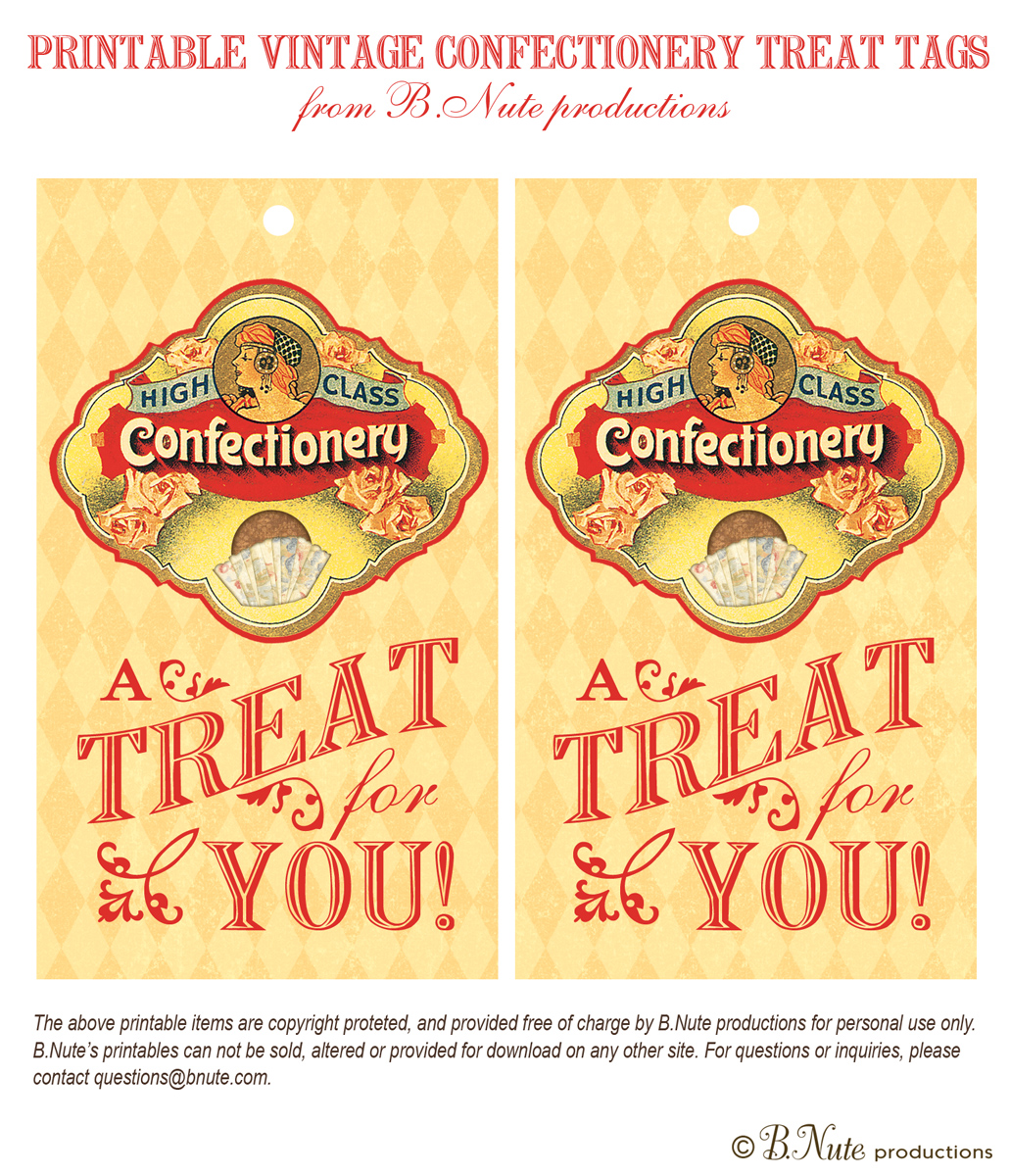 | Free Printable Vintage Confectionery Treat Tags by B.Nute production |
